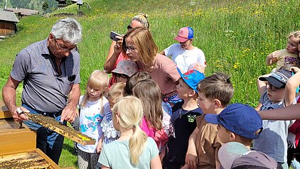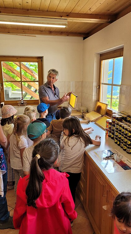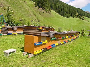 Neben der kleinen Berglandwirtschaft und der Vermietung betreuen wir noch eine Imkerei mit eigener Königinnenzucht. Rund 50 Bienenvölker produzieren einen überaus leckeren und hochwertigen Honig aus dem Nektar von hauptsächlich Löwenzahn, Heidelbeere, Wald, Himbeere, Alpenrose und den vielfältig blühenden Bergwiesen. Somit ist unser Honig eine Mischung aus verschiedenen Blüten und Kräutern.