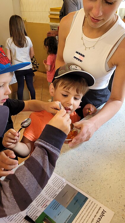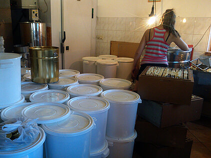 Von Ende Juni bis Ende August gibt es reichlich Arbeit. Seien Sie dabei, wenn wir die mit Honig gefüllten Honigwaben aus den Stöcken nehmen und bei uns im Haupthaus schleudern. Erfahren Sie bei dieser Gelegenheit auch einige interessante Fakten über die Bienen und das Imkern.