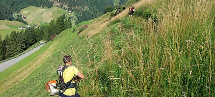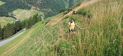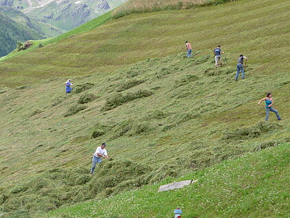 Die Gesamtfläche unseres kleinen Betriebes ist 18 ha (Wald und Grünland). Die Heimfläche am Bauernhof und die Almwiese auf der Unterstalleralm werden 2-mal gemäht. Bei uns bleiben moderne Maschinen großteils in der Garage – Handarbeit steht auf der Tagesordnung. Aufgrund der überaus steilen Hänge ist das Arbeiten mit Traktor & CO nicht möglich.