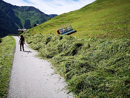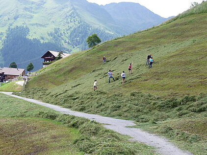 Bei der Heuernte dabei zu sein ist immer ein Erlebnis. Wir sind immer froh über helfende Hände und freuen uns, Ihnen das Arbeiten auf unserem Bauernhof zu zeigen, sei es am Feld, beim Melken der Kühe oder beim Füttern der Kälber.